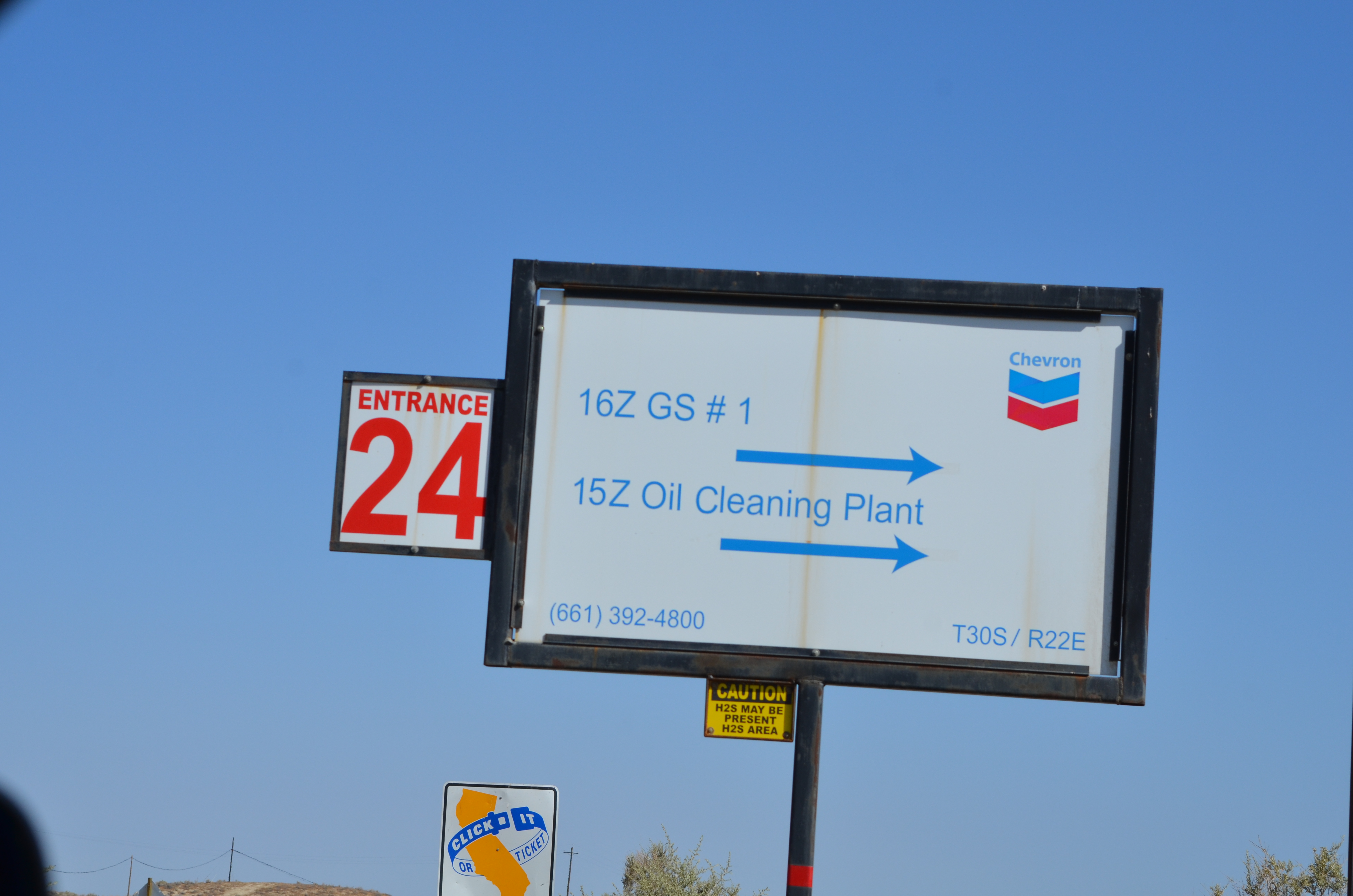We turned down a side road marked by a massive Chevron sign, and discovered that half our transect snaked through the hills past quivering oil pipelines, massive machines of unfathomable purpose, and so many caution signs that we’ve started seeing how many variations we can collect. Understandably, we investigated the area with more than the usual level of caution. But as we failed to discover any indication that we weren’t allowed to be there (and even had a couple official-looking trucks pass by without incident), we decided to complete the survey as planned.