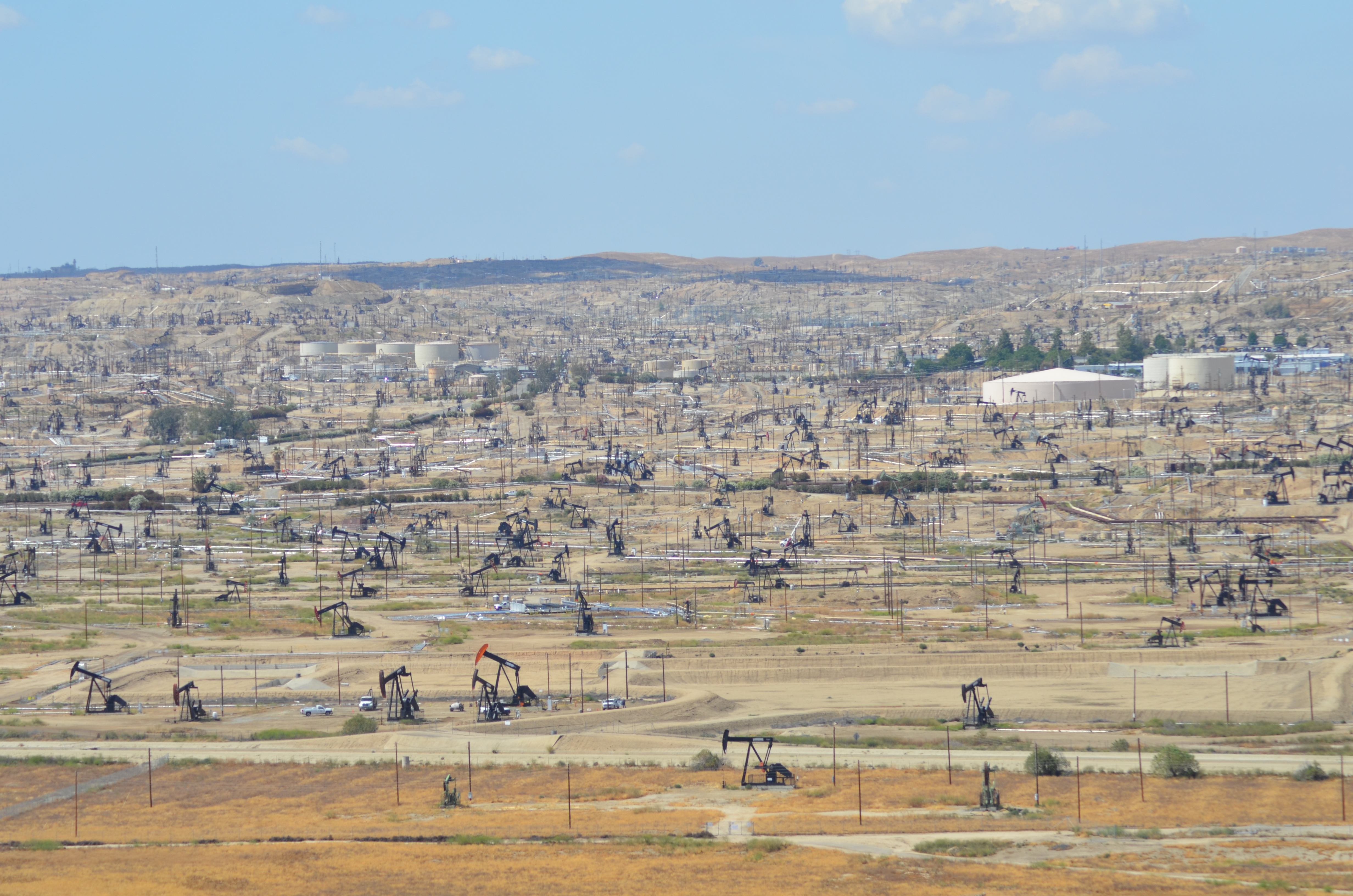 The extent of oil country here caught me completely off guard. And McKittrick is far from the worst of it. In north Bakersfield is a ridge called Panorama Park, which rises dramatically over the riverbed and offers a breathtakingly wide view of the surrounding countryside. And Oildale. The oil pumps are so indescribably numerous that they literally blacken the horizon, like ants swarming upon a discarded breadcrumb.