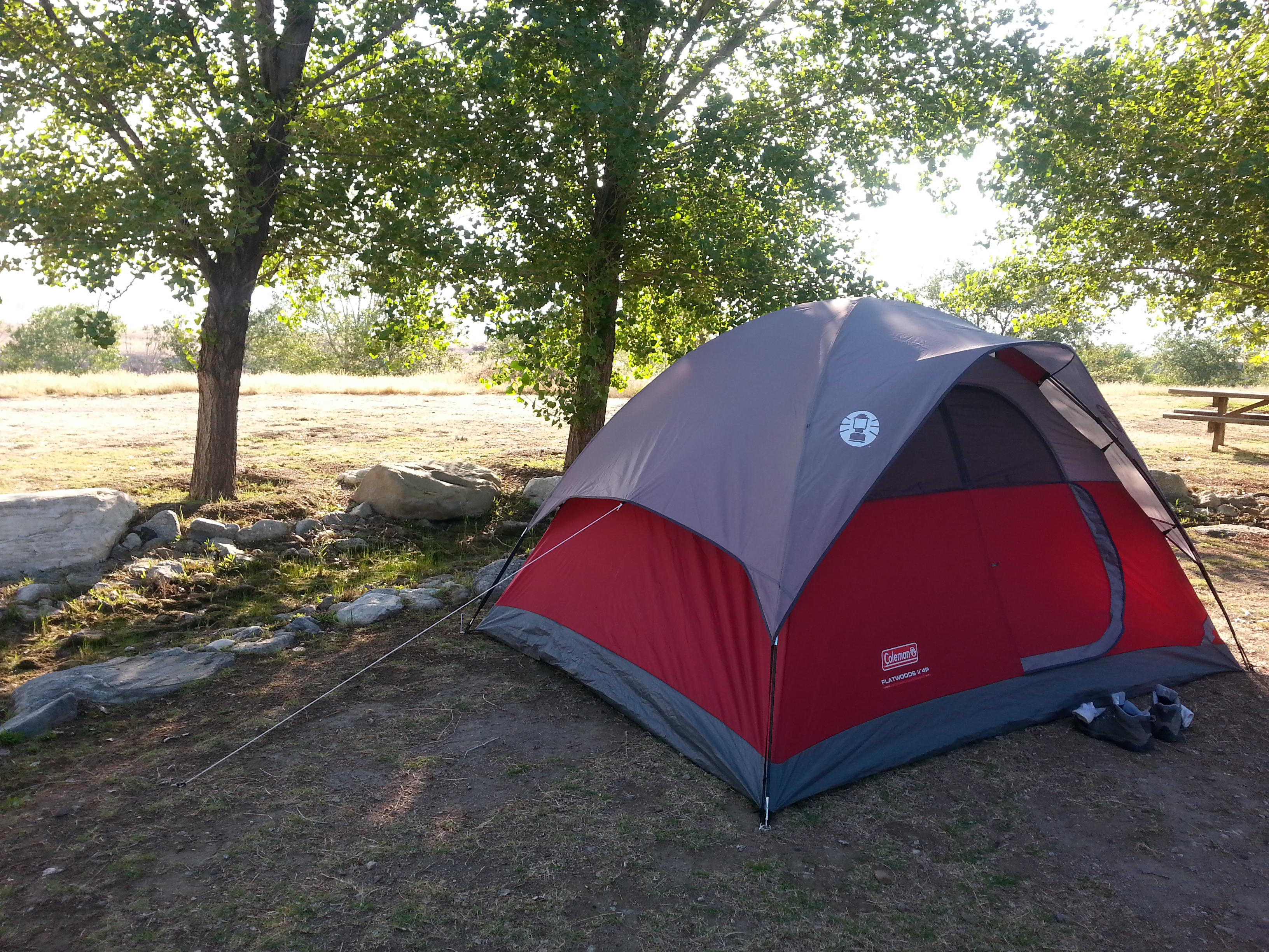 The welcome sign arching over rolling hills was a much appreciated change of scenery after our gloomy vistas of late. We drove up to the administration building, walked through a garden of native plants and underneath an arch of deer antlers, checked in just beyond a patio with bats chattering in the rafters, and by the time we set up our tents alongside our own personal stream and pond complete with nesting Red-winged Blackbirds, we were in heaven.