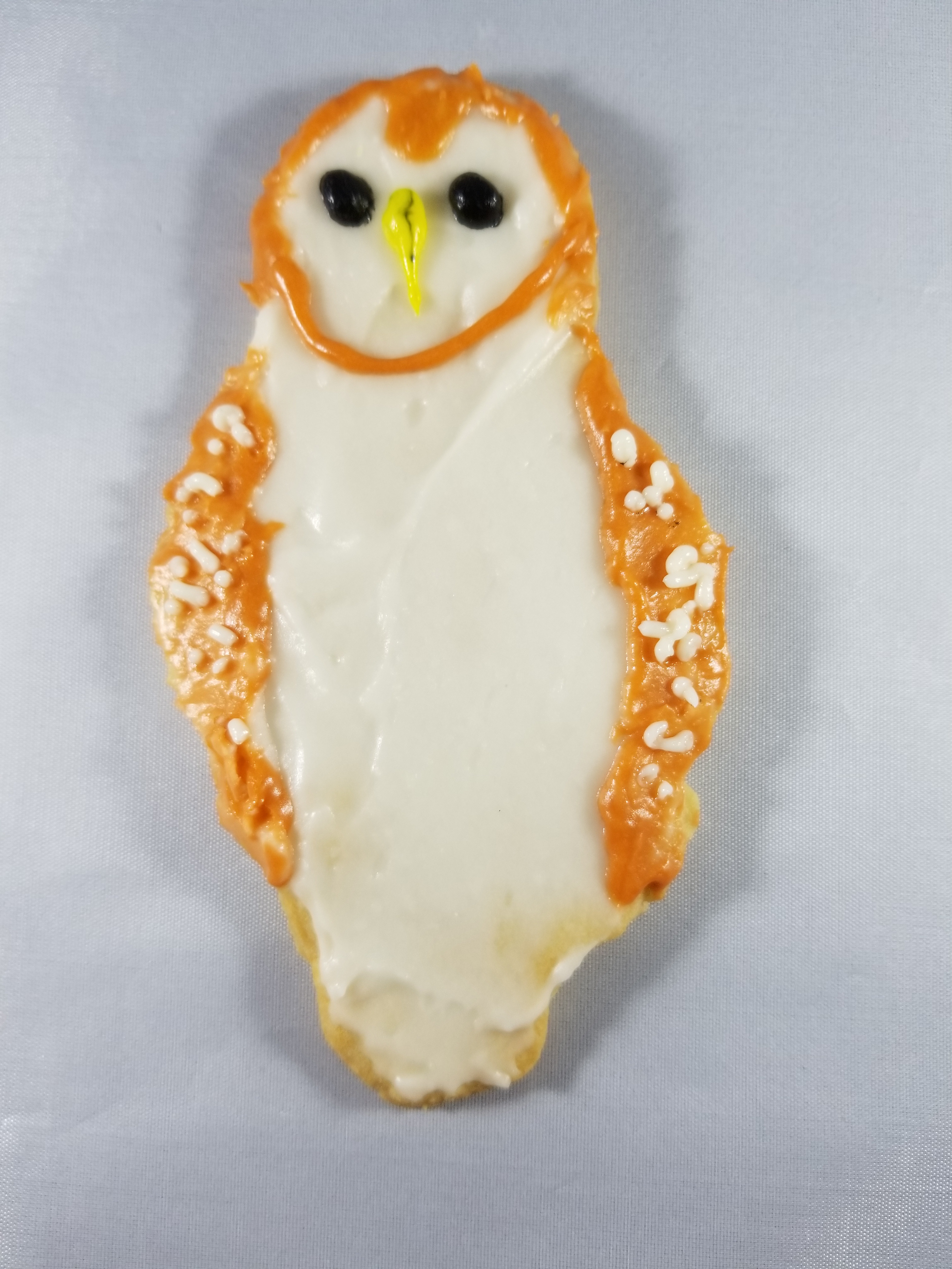 White front and face with orange/tan back. Dark eyes. Heart-shaped facial disk.